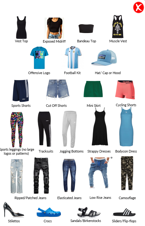- Slogans which could offend anyone are not acceptable on any form of clothing or accessories.